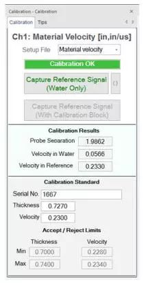 在調整界面輸入參考鑄件的序列號、厚度以及聲速等信息