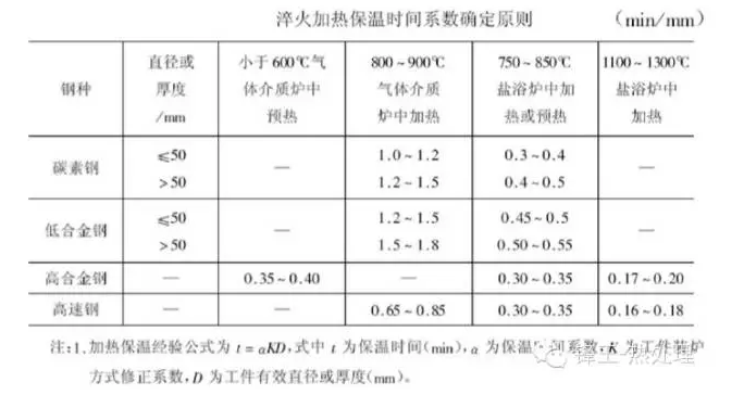 傳統(tǒng)的碳素鋼淬火加熱時間的計算公式:T=K?αD